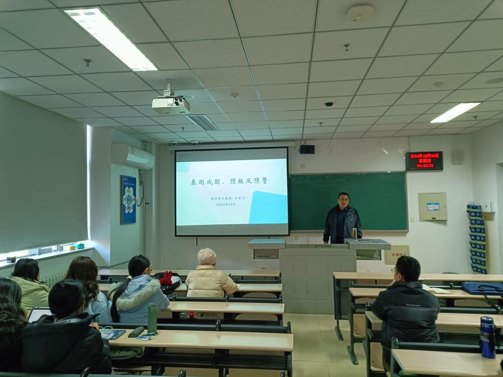12月26日上午,廊坊市气象台台长、正高级工程师王清川来校作“暴雨的成因、预报及预警”专题学术报告。报告会由太阳集团tcy8722、河北省资源环境灾变机理及风险监控重点实验室主办,由太阳集团tcy8722教师丁磊主持。学校部分师生参加了此次学术报告会。